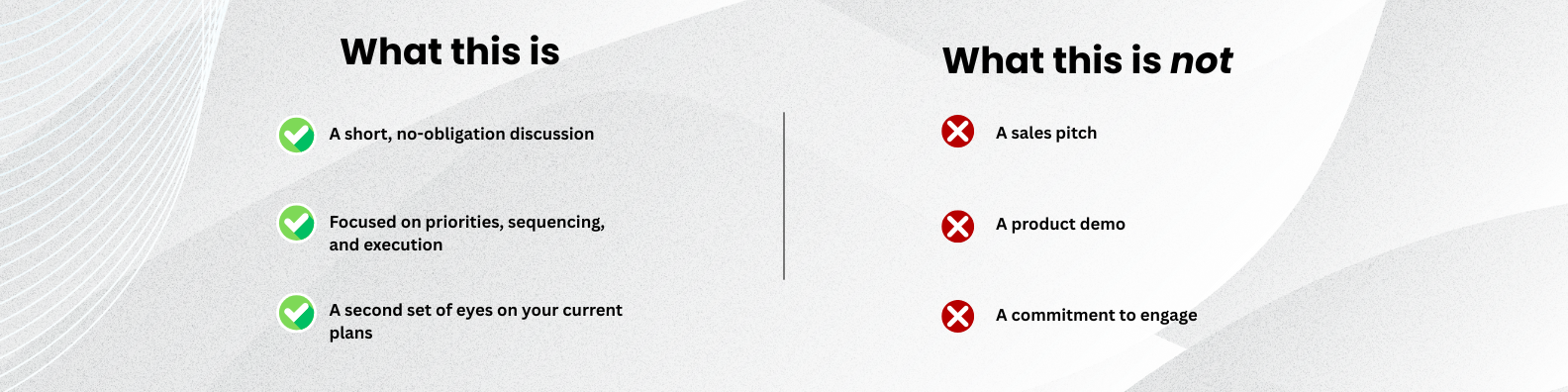 This short planning conversation helps bring clarity before priorities and budgets are finalized.
